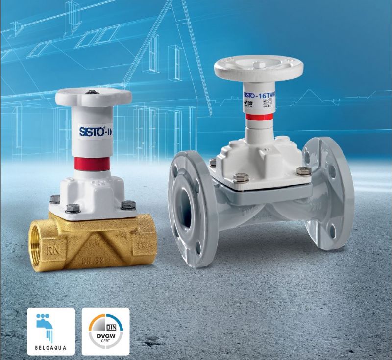 Les installations d’eau potable doivent, évidemment, répondre à des exigences d’hygiène sévères. Les matériaux agréés pour le contact avec l’eau potable ou ceux destinés à la production d’eau potable font l’objet d’un certificat attribué par Belgaqua, conformément aux prescriptions de la procédure de contrôle « HYDROCHECK ». Jusqu’à présent, ce n’était pas encore le cas pour les robinets à membrane, tout au moins pas pour leurs parties métalliques. Les robinets KSB Sisto sont les premiers à obtenir ce certificat, tant pour la membrane EPDM que pour le corps du robinet (parties métalliques) ; en d’autres termes, pour l’ensemble du robinet. La certification s’applique donc tant au Sisto®-16RGA (corps en bronze) qu’au Sisto®- 16TWA (modèle en fonte et revêtement Rilsan).