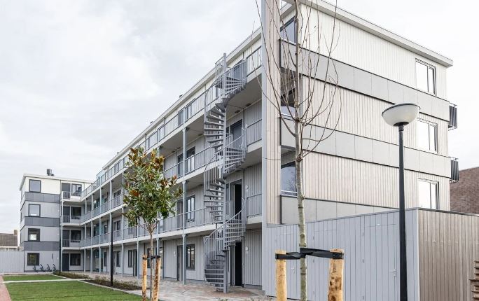 Team Modulair a élaboré une solution de construction modulaire adaptée pour Wooncompagnie par le biais d'une approche intégrale. Au total, 104 modules ont été produits, dont trois par jour (comprenant les sidings Cedral). À peine huit mois après le coup d'envoi officiel, la livraison définitive des appartements a eu lieu. Rapide, de qualité, dans les limites du budget et aussi net et élégant : mission accomplie !
