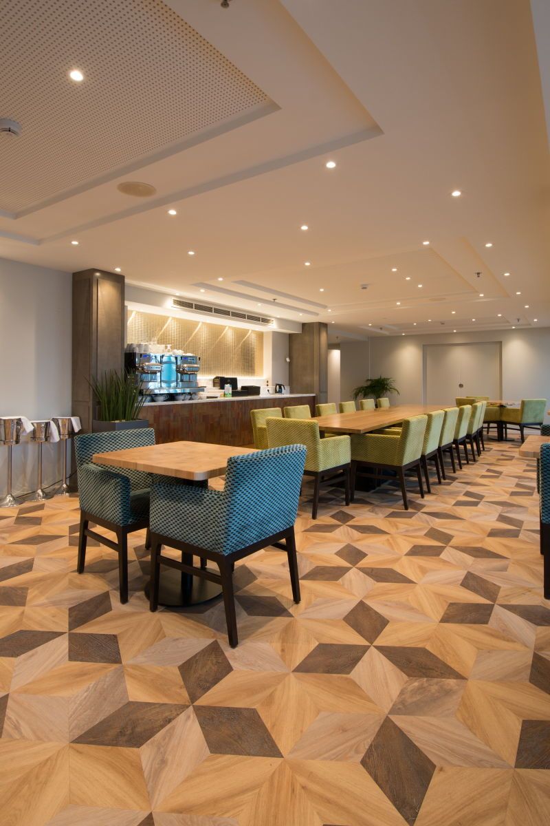 L’hôtel anversois Radisson Blu Astrid, situé sur la Koningin Astridplein, a subi une véritable métamorphose. La majeure partie du bâtiment majestueux, imaginé par le célèbre architecte Michael Graves, a été entièrement rénovée à la demande du groupe international Algonquin. Les sols dans la salle des fêtes ovale et l’espace petit-déjeuner sont des créations exclusives de l’équipe en charge du design de Moduleo, en concertation avec le designer londonien Alex Kravetz.