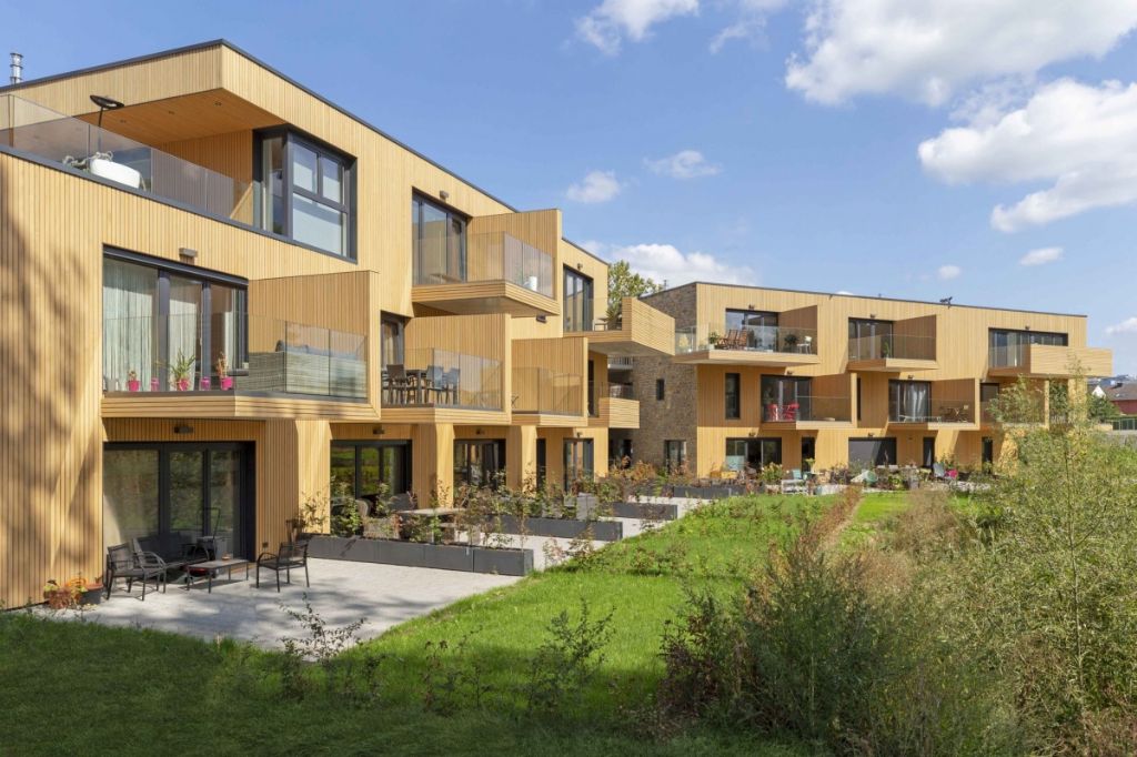A la demande de Pierre & Nature Luxembourg, le bureau d'architecture Crahay et Jamaigne a réalisé la conception d’un ensemble de 20 logements à Stockem, en périphérie d’Eupen. Le projet fait la part belle aux beaux volumes, au bois clair et aux vastes balcons lumineux.