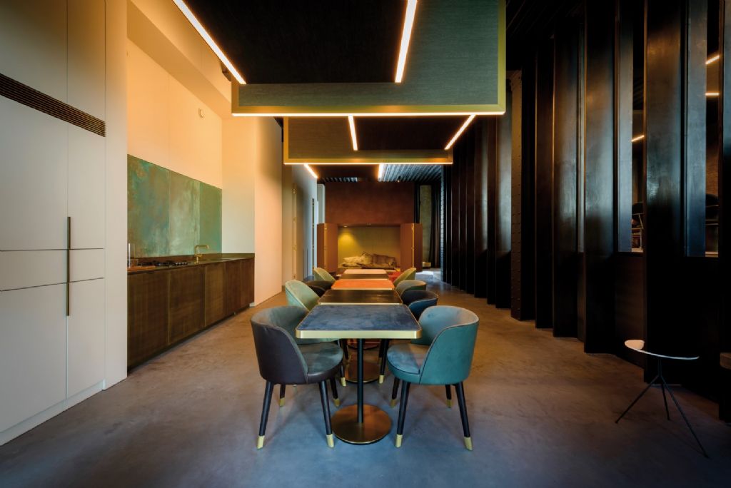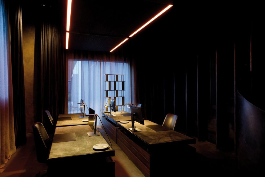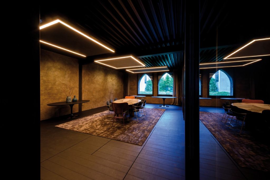 Stephan Mees explique : « Il s’agissait d’un projet sur le site de Kanaal, imaginé par Axel Vervoordt à Anvers. Nous avons pu développer un concept d’éclairage innovant en étroite collaboration avec Alex Gaspar, le propriétaire d’Autodialog. On avait d’abord pensé à installer un faux plafond dans une grande salle de conférence avec beaucoup de matériaux durs et un plafond en acier. Cependant, nous avons préféré imaginer un panneau acoustique dans lequel nous avons incorporé un éclairage. De cette façon, l'espace est resté au plus proche de son aspect original.