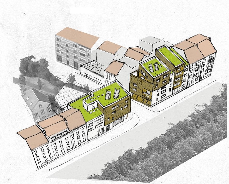Le projet mise sur la durabilité avec une bonne isolation des parois extérieures, une ventilation performante, des toitures vertes, un boiler solaire et des citernes d’eau de pluie. Une plus-value également pour le portefeuille des futurs habitants.