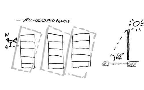 Ne prenez pas la lumière du jour à la légère : ne faites pas d'erreurs. Par exemple, si vous décidez de construire un toit en shed, il doit être bien orienté (orienté vers le nord et ne descendez pas en dessous de 62°). (Regardez vers le nord et ne descendez pas en dessous de 62°). Cela peut vous coûter cher de résoudre les conséquences (surchauffe). La meilleure solution vient de la conception, pas de la technologie ! Il est préférable de bien concevoir plutôt que de s'appuyer sur des techniques et de devoir réparer plus tard.