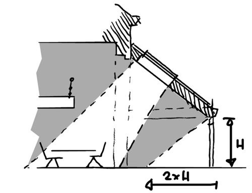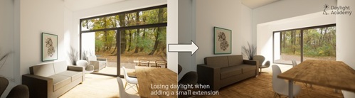 3. Rappelons également la règle empirique selon laquelle la lumière ne pénètre que jusqu'à deux fois la hauteur de la fenêtre (qui est désormais plus basse et plus éloignée).
