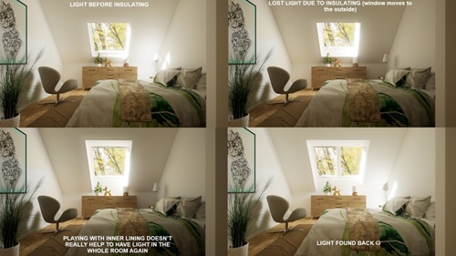 DONNÉES : Ce qui est censé améliorer notre cadre de vie peut nuire à l’éclairage naturel. En isolant davantage nos murs et nos toits — en les rendant plus épais et plus performants — nous réduisons involontairement l’entrée de lumière dans nos intérieurs ! Jusqu'à 25 % pour un toit en pente ! C’est pourquoi les normes actuelles concernant les dimensions des fenêtres ont été révisées pour s’adapter à cette nouvelle réalité.