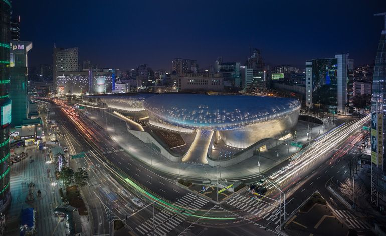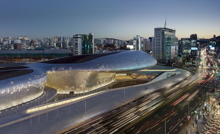 La Corée du Sud est connue pour son utra-modernité. Et celle-ci ne s'applique pas qu'aux voitures et aux objets électroniques à la mode, mais aussi aux villes. C'est ainsi que Zaha Hadid fut appelé à la rescousse pour créer le Dongdaemun Design Park dans le quartier historique animé de Jongno-gu, à Séoul.