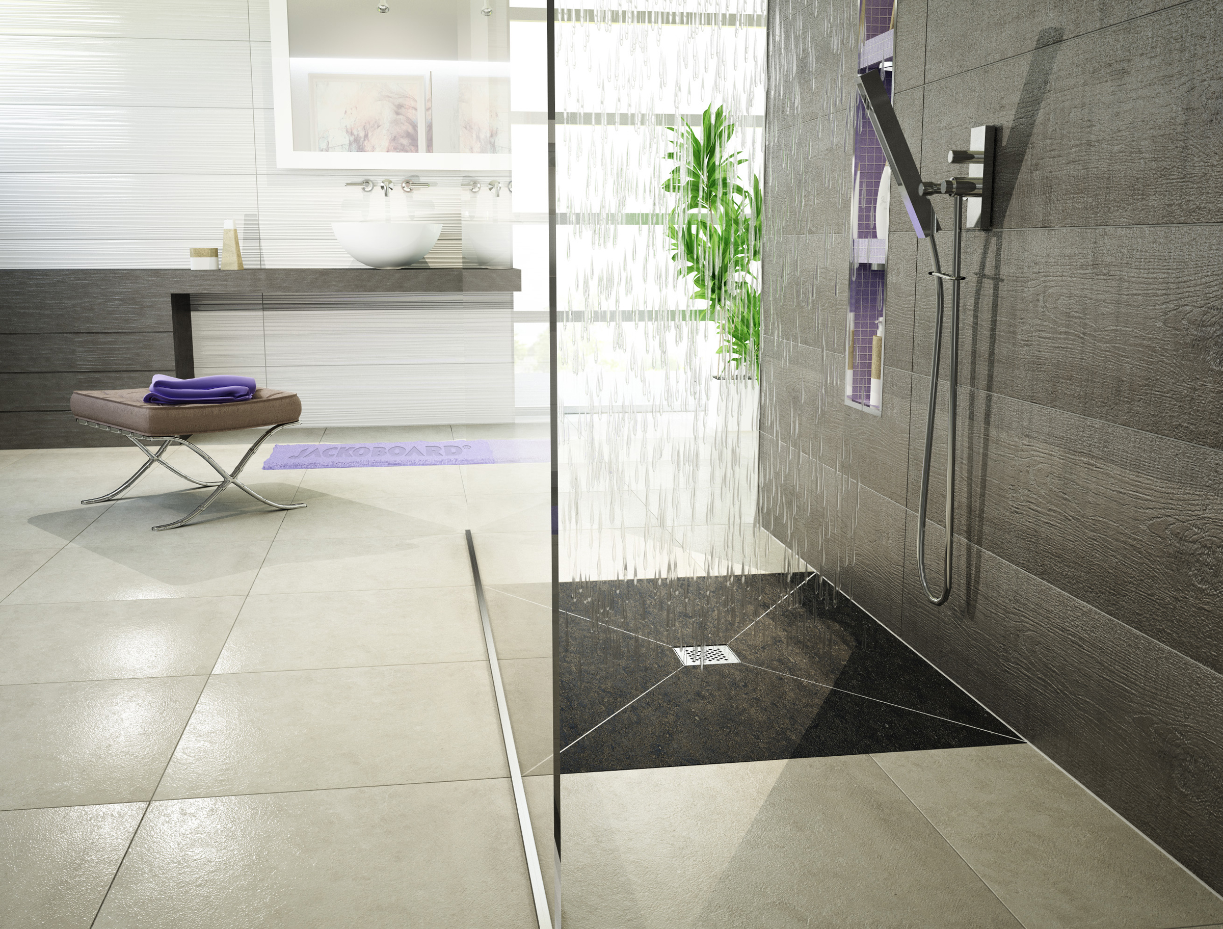 Carrelables et accessibles à tous, les receveurs de douche à revêtement spécial sur les deux faces de Jackon Insulation sont facilement mis en œuvre et très fonctionnels. Le noyau XPS hydrofuge est particulièrement robuste et la pente préformée garantit un parfait écoulement. Ces receveurs se distinguent également par leur isolation acoustique. Le rapport de contrôle de l’Institut de physique de bâtiment Fraunhofer en Allemagne indique qu’ils répondent à toutes les exigences minimales et accrues en matière d’isolation acoustique des équipements selon la norme DIN 4109 ainsi qu’à celles, plus strictes, de la norme VDI 4100.
