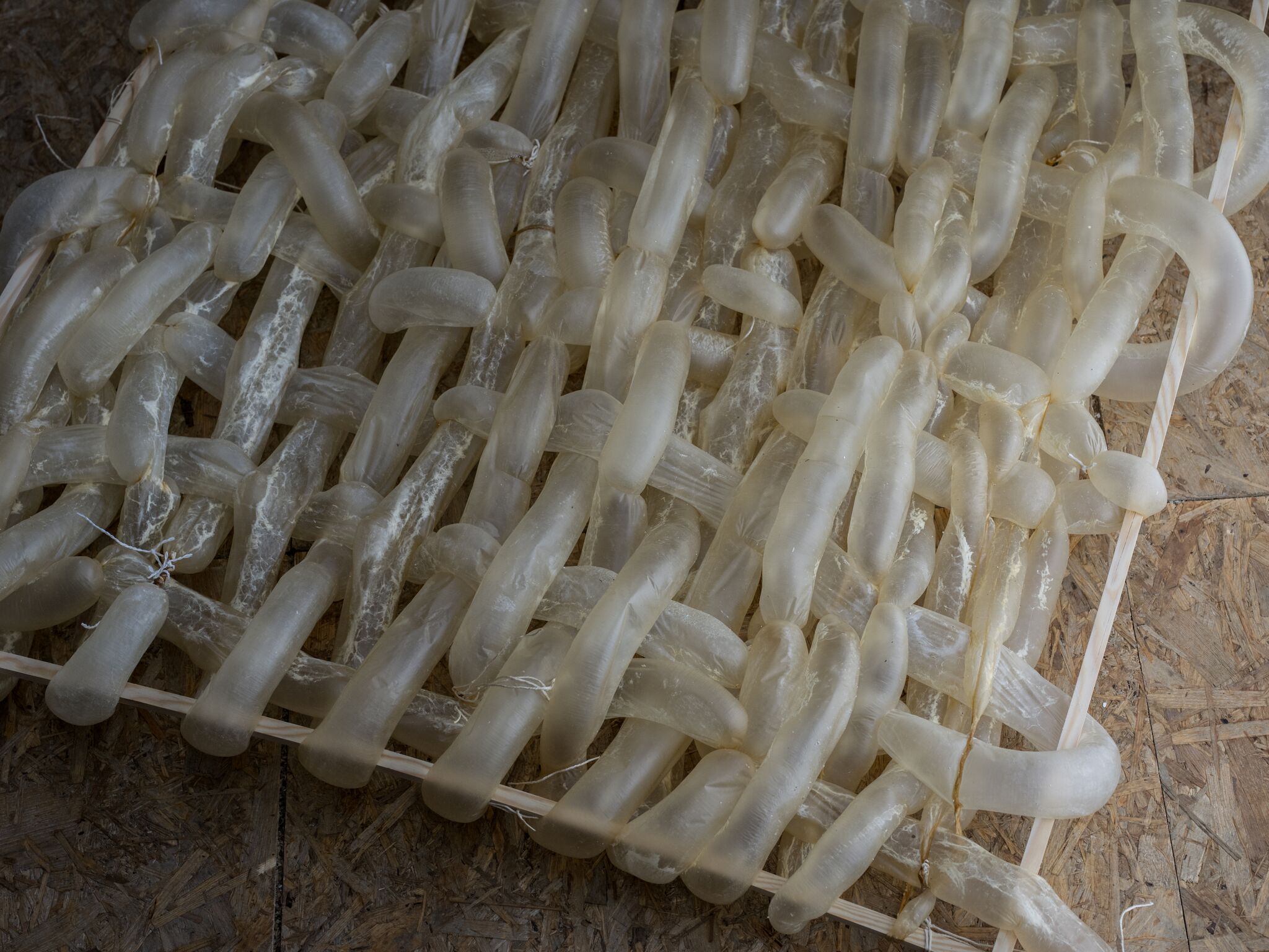 Le résultat ? Deux sièges dont le cuir est composé de boyaux de bœuf et de vessies de porc transformés. Tobias Trübenbacher espère que cela mettra un terme à la mauvaise réputation de ce type de matériau. « 'Inner Skins' montre que ces peaux peuvent avoir les mêmes qualités qu'un cuir classique après avoir été nettoyées et tannées au sulfate de chrome ou au sulfate de potassium et d'aluminium », explique-t-il. « De plus, les sièges sont non seulement solides, mais également beaux. »