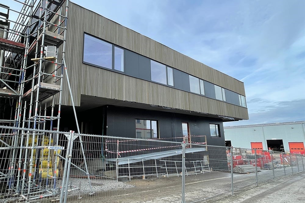 Hébergés jusqu’à présent sur un seul niveau de bureaux d’environ 150 m2, les 12 employés de la menuiserie s’apprêtent à emménager dans un nouveau bâtiment de 270 m2 sur deux niveaux. Tanguy Wolters, directeur bâtiment Liège et responsable de la menuiserie : « Après avoir adapté l’outil pour faire face à notre croissance, nous nous retrouvions avec des bureaux obsolètes. Il était donc logique d’investir pour offrir un lieu de travail fonctionnel et agréable également à nos employés ». Les anciens bureaux démolis, la douzaine d’employés a provisoirement trouvé refuge dans des containers installés sur le parking. Très bientôt, tout le monde pourra travailler dans un bâtiment en dur flambant neuf. 12 postes de travail ont été prévus, plus deux de réserve, ainsi qu’un réfectoire avec petite cuisine et une grande salle de réunion. De plus, Duchêne a profité de cette extension pour refaire à neuf les locaux sociaux du personnel ouvrier.