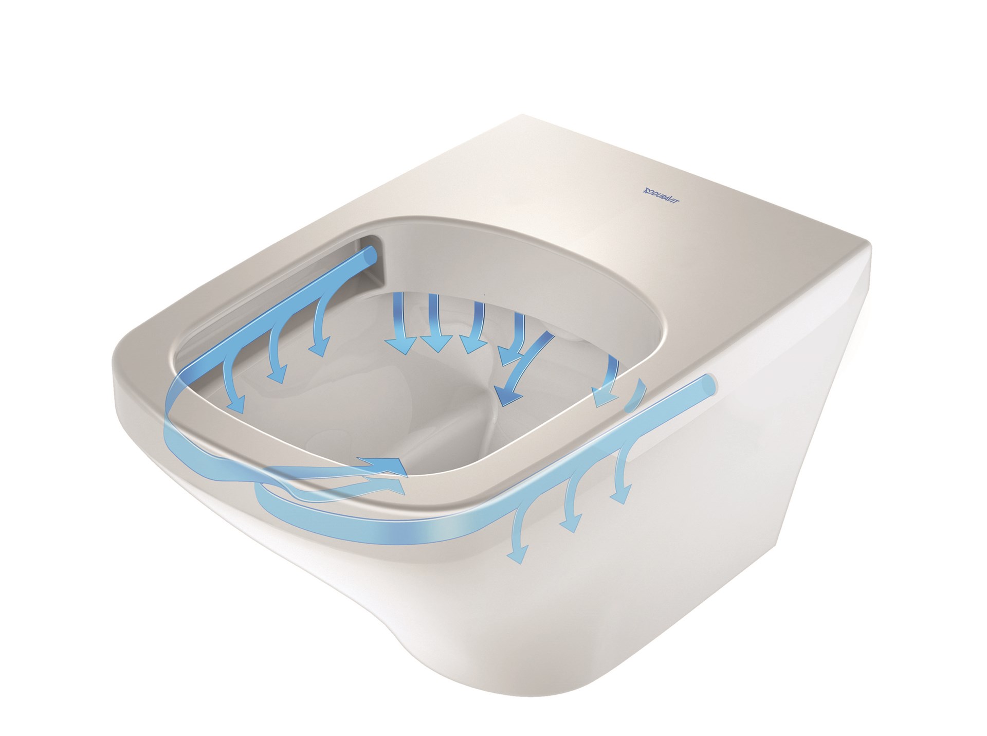 La technologie Duravit Rimless® avec bord de rinçage ouvert permet un cheminement innovant et performant de l’eau de rinçage avec une faible quantité d’eau de 4,5 litres. Selon le modèle et le programme de chasse choisis, les urinoirs équipés d’une buse de rinçage ne consomment qu’entre 0,5 et 2,1 litres d’eau.