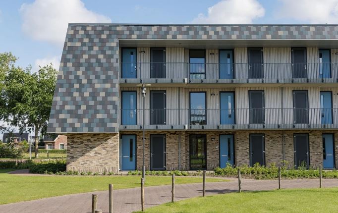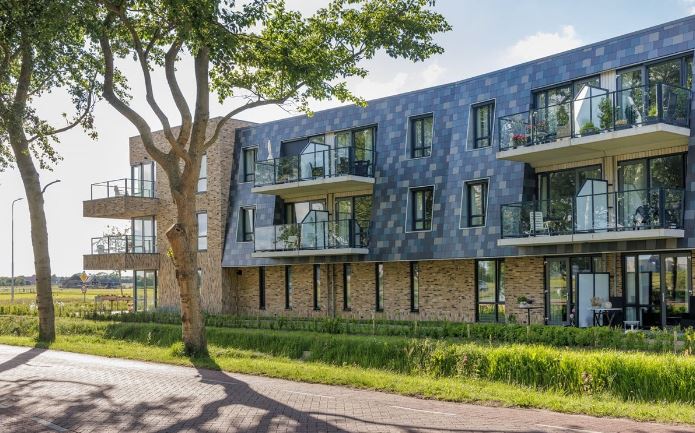 Vivre de manière autonome et avoir immédiatement accès à des soins professionnels en cas de besoin : c'est le rêve de nombreux seniors. À Den Burg, aux Pays-Bas, dans le plus grand village de l'île de Texel, cette réalité a été rendue possible grâce à la réalisation de Schuttehoek, un complexe résidentiel comprenant 27 appartements spacieux. Tout aussi remarquable que la philosophie de soins de santé sous-jacente, la structure architecturale comprend une forme de toiture enveloppante avec des ardoises Cedral Alterna. Un mélange astucieux de cinq nuances différentes crée une façade dynamique.