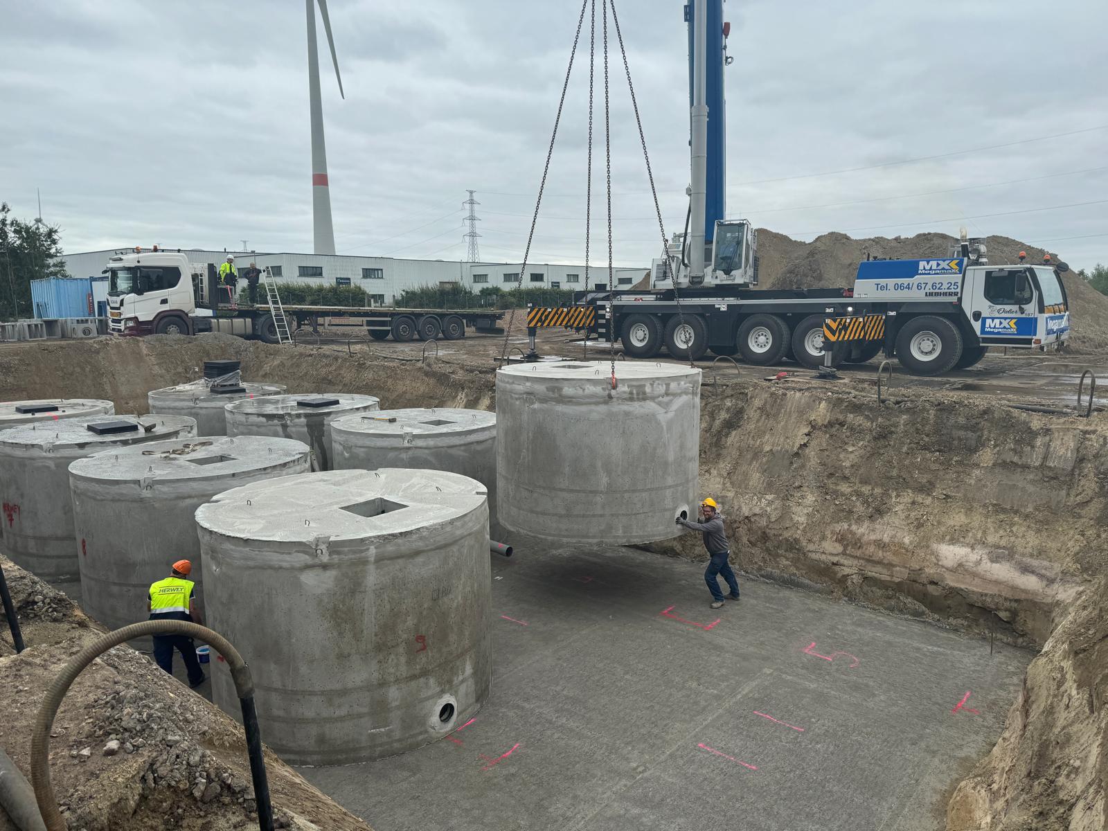 La semaine dernière, ecobeton water technologies, les terrassiers HERWEY et M-TANKS, et le bureau d'architectes BURO B étaient à l'œuvre sur le Zuiderring pour Jacobs Transport à Genk.