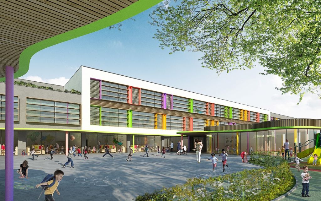 Le projet « Site Van Oost » fait partie intégrante d’un plan de développement durable pour la commune de Schaerbeek (Bruxelles), qui vise à revaloriser son riche patrimoine architectural du XIXe siècle et à revitaliser la commune en l’équipant de services publics adaptés à son évolution démographique tout en élargissant l’offre de logements. Ce projet signé DDS & Partners Architects, lauréat du concours lancé pour la conception d’un développement à usage mixte, comprend une école francophone et une école néerlandophone, une salle de sport ainsi que onze appartements. Rendez-vous à la rentrée scolaire 2018.