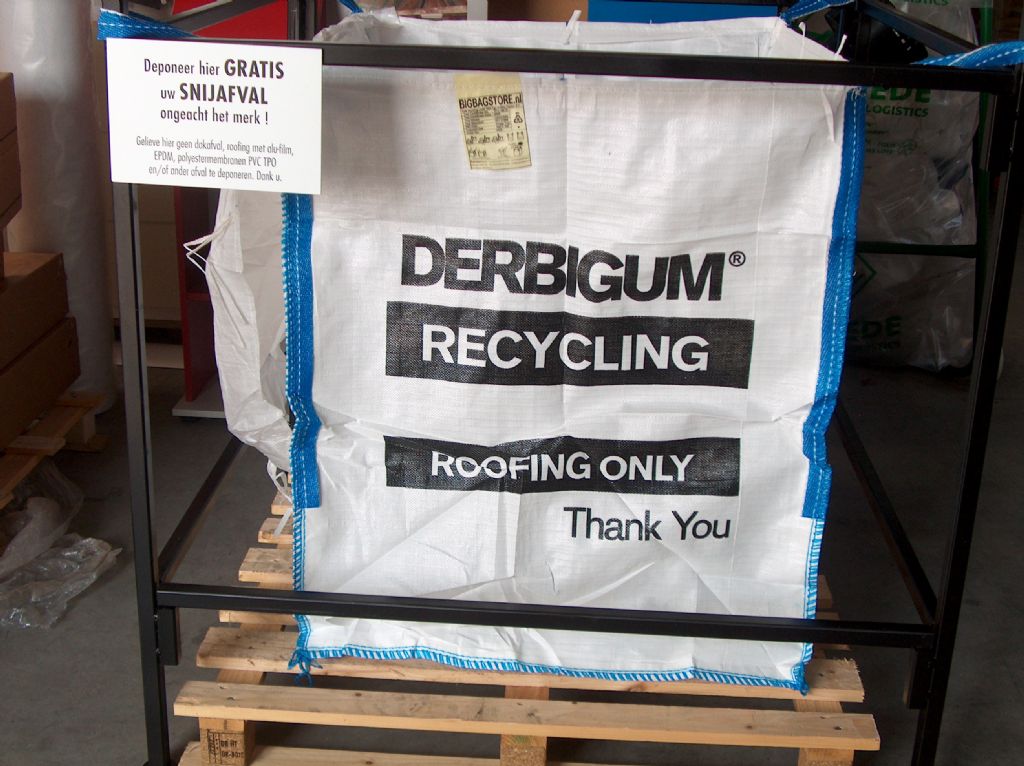 Cette collecte est limitée aux déchets de coupe (déchets de chantier) des nouvelles membranes d’étanchéité. Le couvreur dépose ses déchets de coupe dans le bigbag Derbigum auprès des points de collecte de la distribution participants. Ce système semble porter ses fruits dans la pratique. Koen Sneiders : « La mise en place de ce système de collecte, entièrement financé par Derbigum, est assurée de manière très simple et demande très peu d’efforts de la part de l’entrepreneur que du couvreur lui-même. Le couvreur doit seulement s’assurer de déposer uniquement des déchets de coupe dans le sac.Grâce à un lien direct figurant sur le site Internet de Derbigum, le couvreur peut également visualiser en toute facilité les entrepreneurs qui participentau système de collecte dans sa région. »