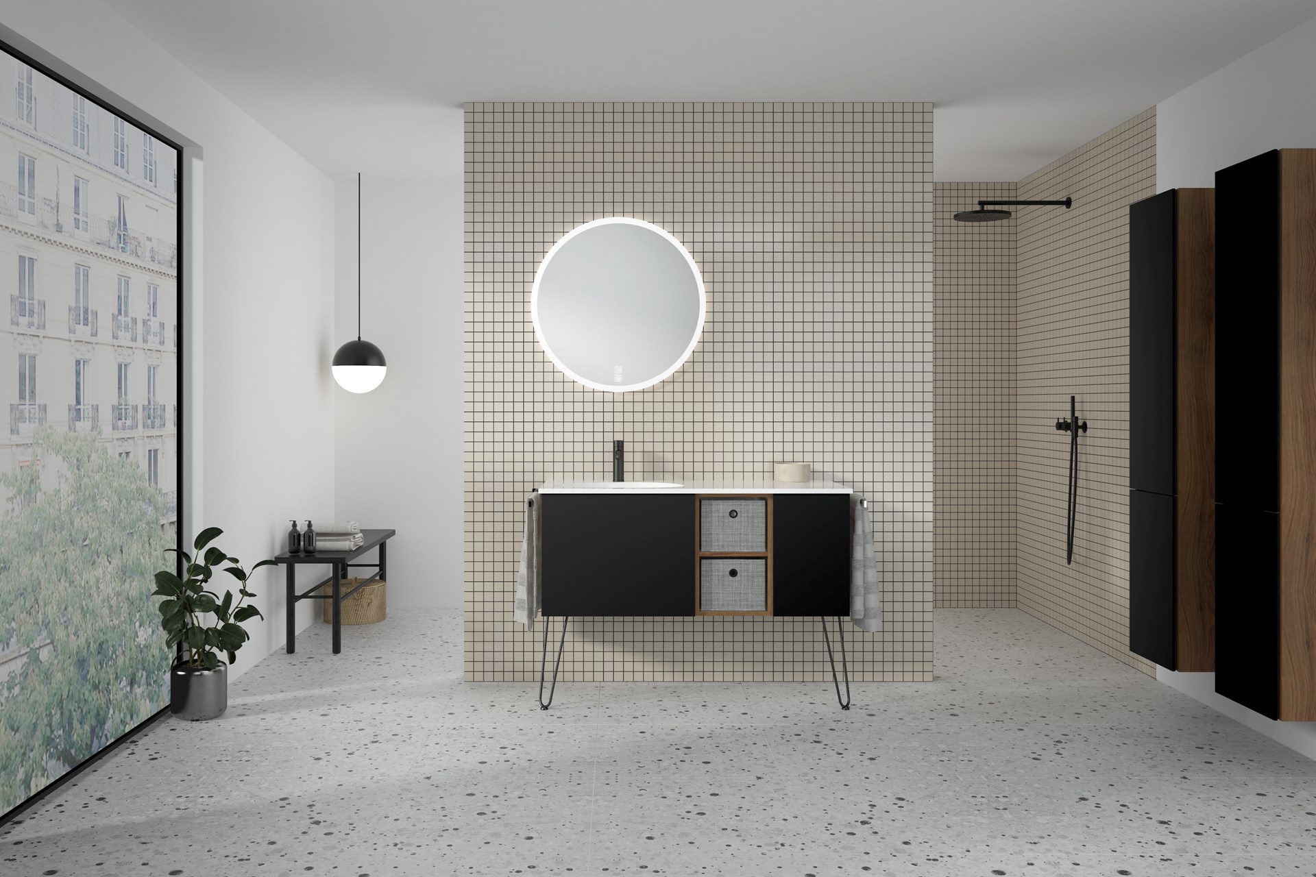 Frame Origin, c'est l'expression de la vision unique de Sanijura : rompre avec la monotonie pour concevoir des salles de bains dotées de personnalité. Au sein de cette collection complète de meubles, se démarquent une variété de miroirs qui apportent une touche distinctive à toute salle de bains. À découvrir, en exclusivité chez Facq : ces miroirs ronds audacieusement montés sur cadres rectangulaires.