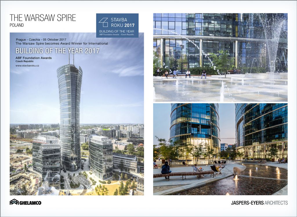 Après avoir été élue Meilleur immeuble de bureaux au MIPIM, la Warsaw Spire conçue par Jaspers-Eyers Architects à Varsovie (Pologne) vient de remporter le prix du Best Building of the Year 2017 au concours organisé à l'initiative de la fondation tchéque ABF – ‘Foundation for Development of Architecture and Construction’