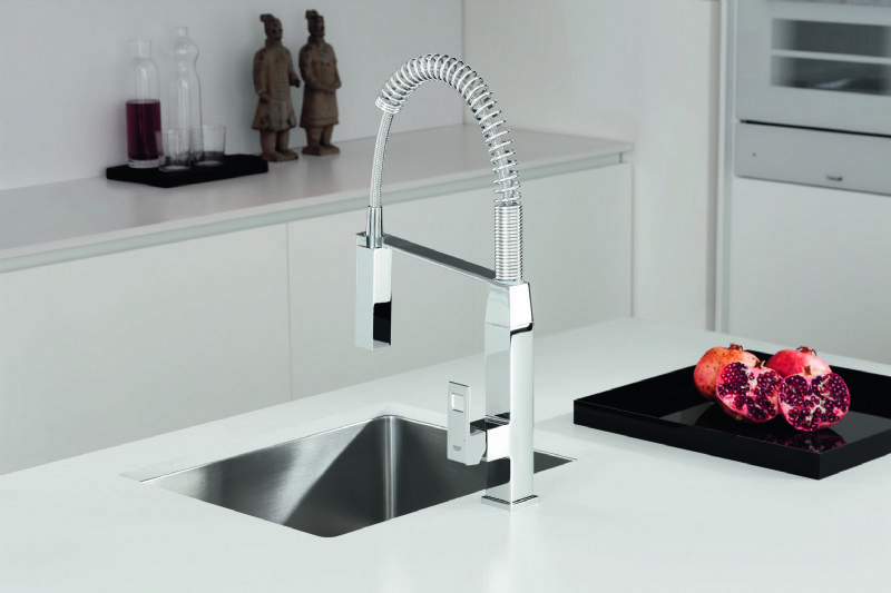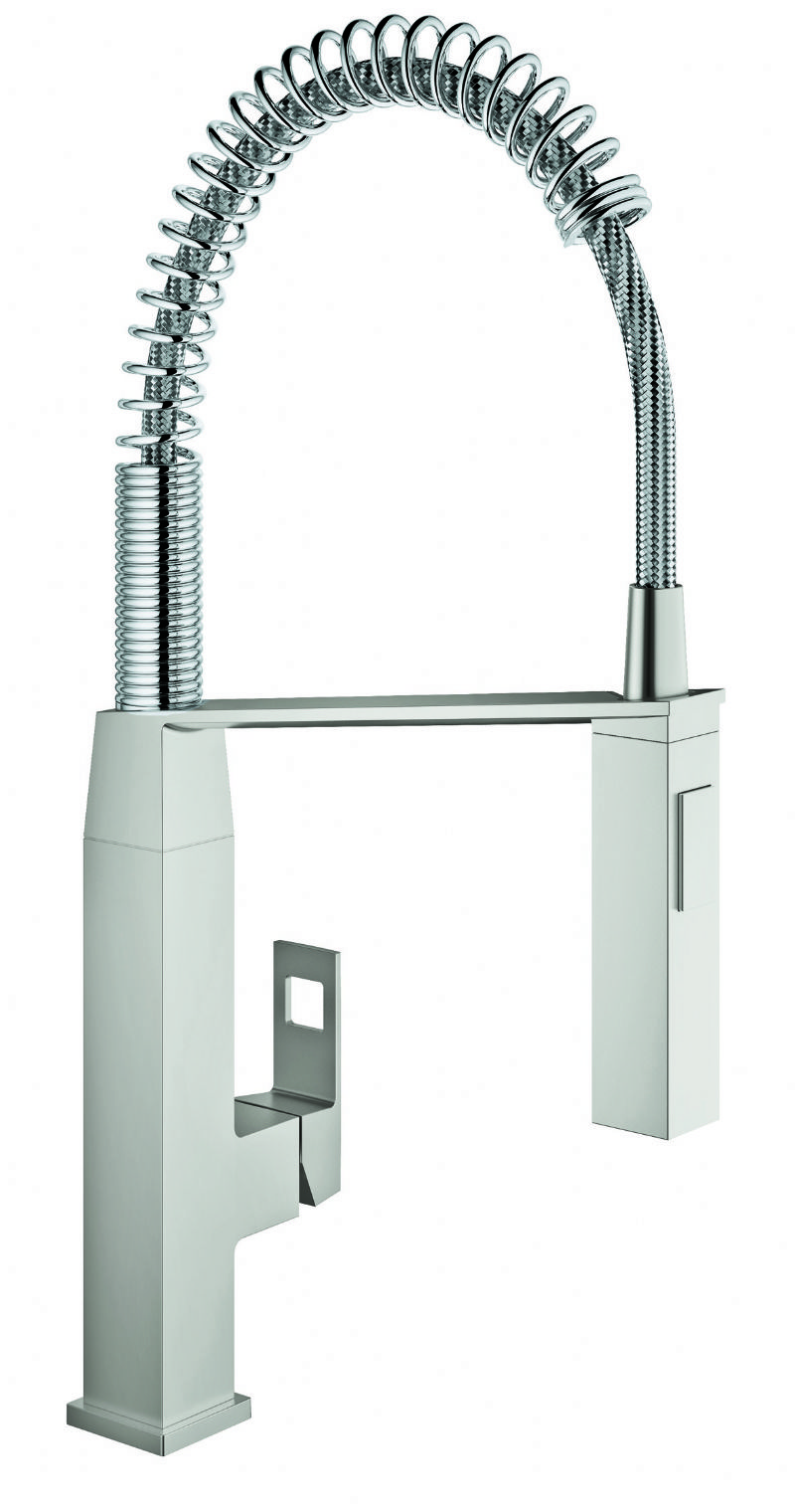 Le fabricant allemand Grohe est connu depuis des années notamment pour ses robinets. Il lance à présent un robinet de cuisine doté d'un caractère architectural et d'une technologie conviviale : l'Eurocube. Equipé d'une douchette, il fait entrer les performances professionnelles dans toutes les cuisines.