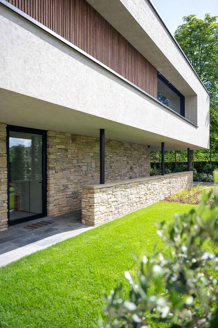 Un bel exemple de l’application de StoSignature est celui d’une maison située à Brasschaat, imaginée par BBSC-architecten. Les architectes, également propriétaires, souhaitaient une façade s’intégrant parfaitement à l’environnement verdoyant de l’habitation. Ils ont opté pour la finition 'poncée' signée StoSignature, dans une teinte chaleureuse et sur-mesure.