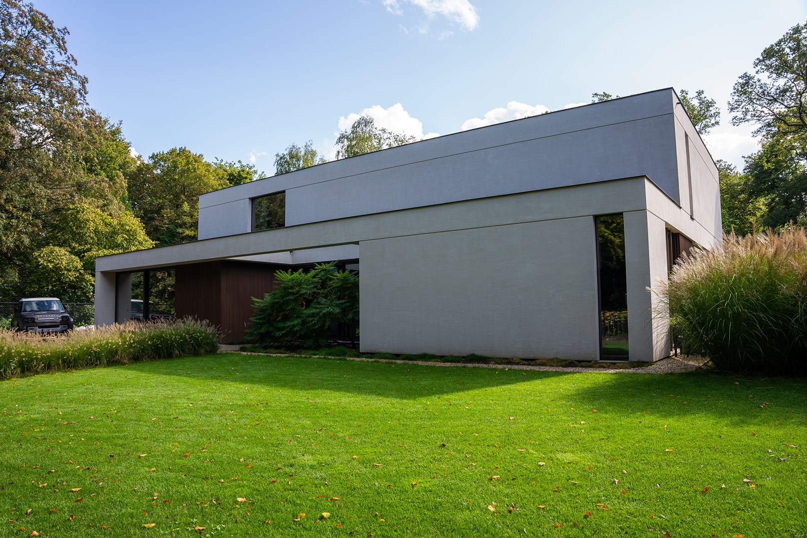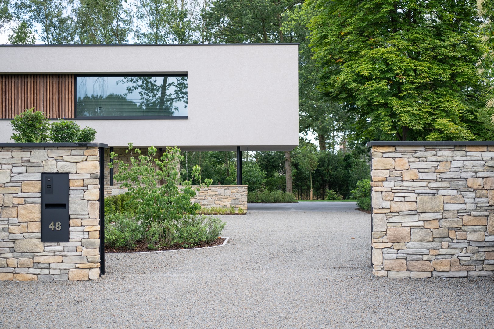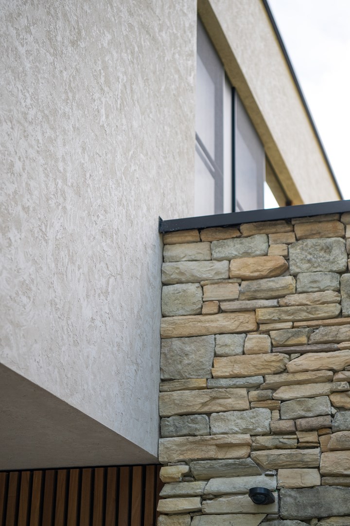 Par exemple, le porte-à-faux joue un rôle structurel en couvrant une terrasse et un carport. Grâce à StoSignature, le plafond de ces espaces a pu être revêtu du même matériau que la façade, apportant cohérence et harmonie à l’ensemble de la maison.