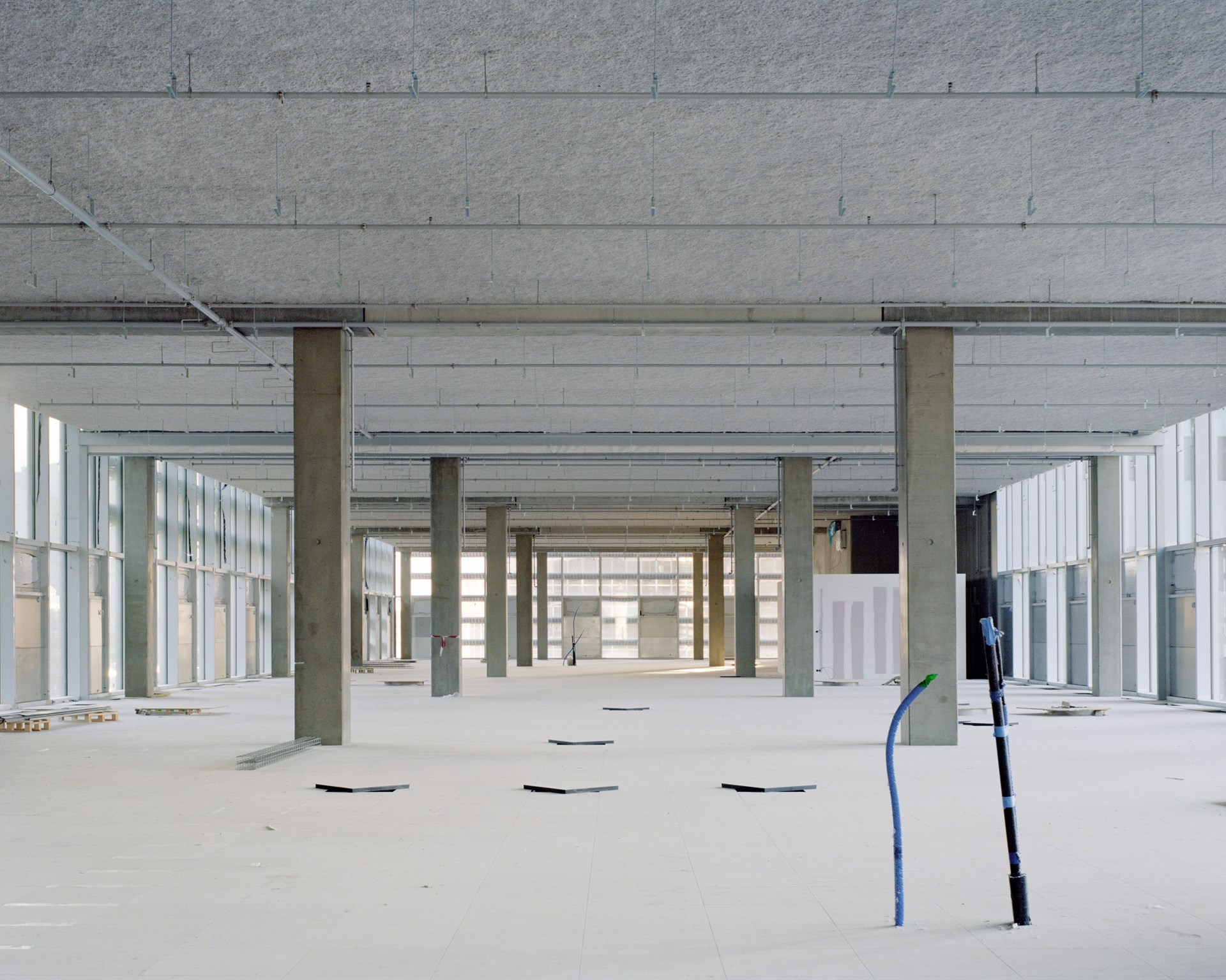 Dans les étages à hauteur simple, des colonnes préfabriquées en forme de U abritent l’apport d’air frais comme un conduit de construction, réduisant ainsi la nécessité de canaux dans les plafonds ou les planchers et assurant une bonne hauteur libre. Le béton préfabriqué offre des portées optimales avec un minimum de structure verticale et d’utilisation de béton.