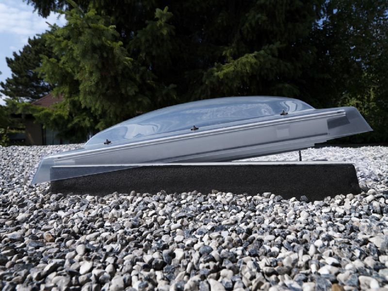 Une excellente isolation thermique est également assurée grâce au double vitrage de sécurité avec dôme de protection et à la rehausse composée de mousse polystyrène. Quel que soit le matériau du dôme (acrylique ou polycarbonate), une étanchéité parfaite est garantie.