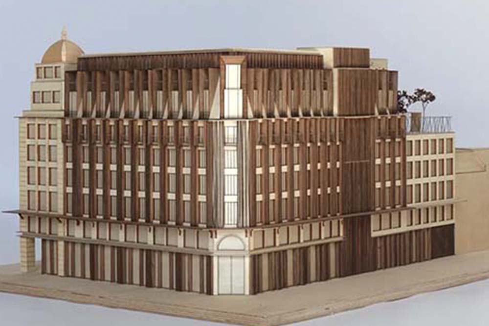 Le bureau d’architectes Coussée Goris Huyghe est connu entre autres pour la réalisation de la bibliothèque communale « De Krook » à Gand, le centre des visiteurs du Zwin à Knokke-Heist et les entrepôts du site « Kanaal » à Wijnegem. L’équipe revisite, dans le cadre de ce projet, l’architecture haussmannienne caractéristique des grands boulevards, en conférant à nouveau au bâtiment une forte identité architecturale. Les éléments verticaux de la façade sont accentués, le toit mansardé est remplacé par des lucarnes aux lignes épurées, des balcons sont ajoutés sous l’avant-toit, la marquise est soulignée et les éléments de grande valeur historique, comme la coupole, sont à nouveau mis en valeur.