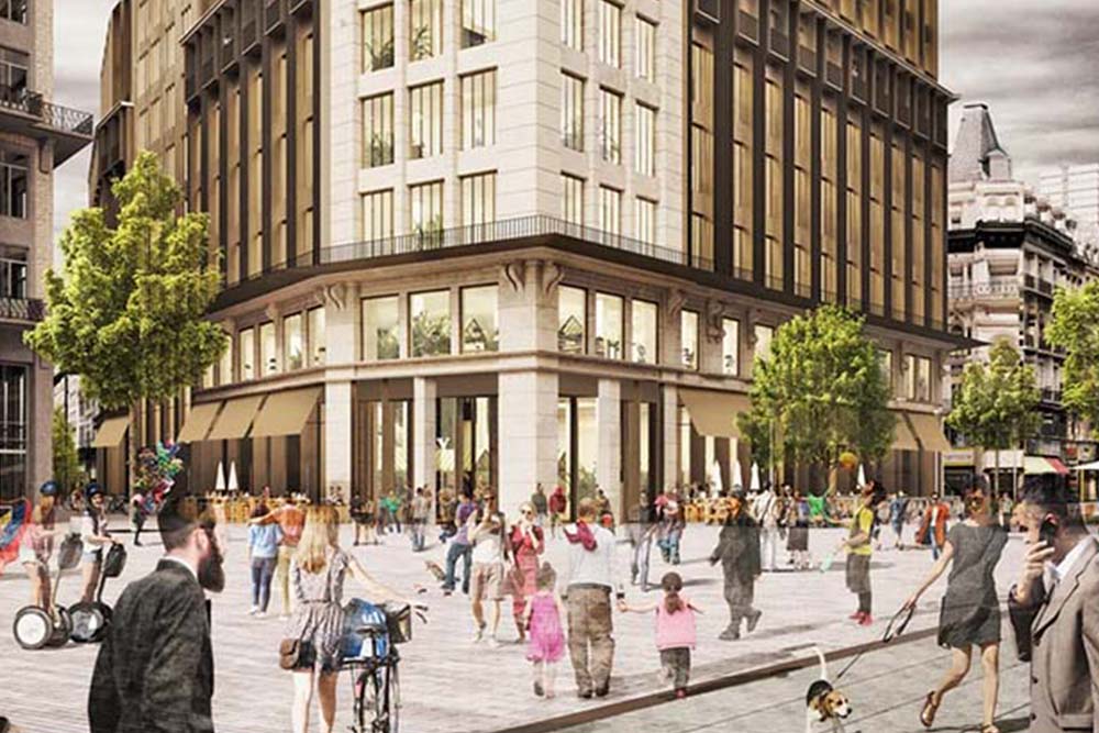 À l’angle du Boulevard Anspach et de la rue du Marché aux Poulets, Delhaize implantera un nouveau concept urbain au-rez-de-chaussée et un supermarché classique au niveau inférieur, sur une superficie totale de 2.200 m².