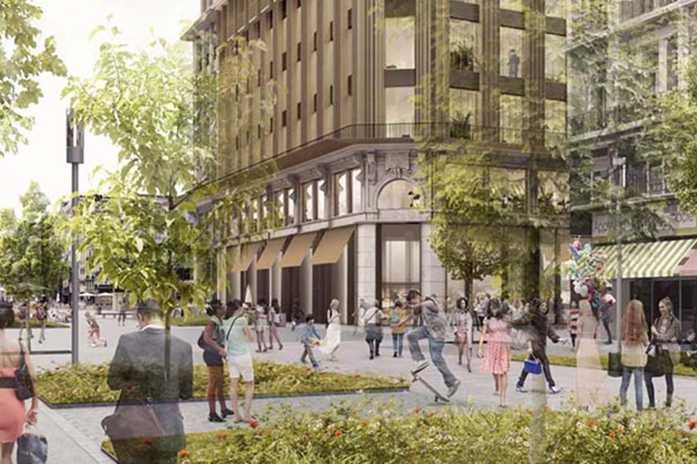 Le socle du bâtiment sera aussi ouvert que possible afin de favoriser l’interaction avec l’espace public environnant, en s’inspirant de la fonction originelle des Grands Magasins de la Bourse. Ville et bâtiment ne feront qu'un.