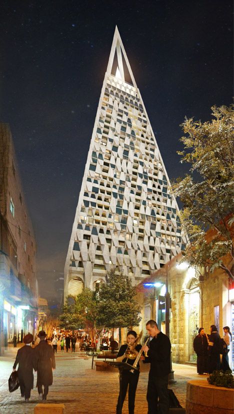 Daniel Libeskind est connu pour son architectecture expressive souvent anguleuse. Parmi ses projets récents figurent le centre de congrès de Mons et un complexe résidentiel à Milan, dessiné en collaboration avec Zaha Hadid. Le contexte historique de Jérusalem a été une grande source d'inspiration, selon Libeskind. « Ce bâtiment pyramidal sera le médiateur entre les mythes et traditions anciennes de la ville et le monde du XXIème siècle. Le design complète le contexte et offre au quartier une place publique animée au coeur de la vieille ville. »