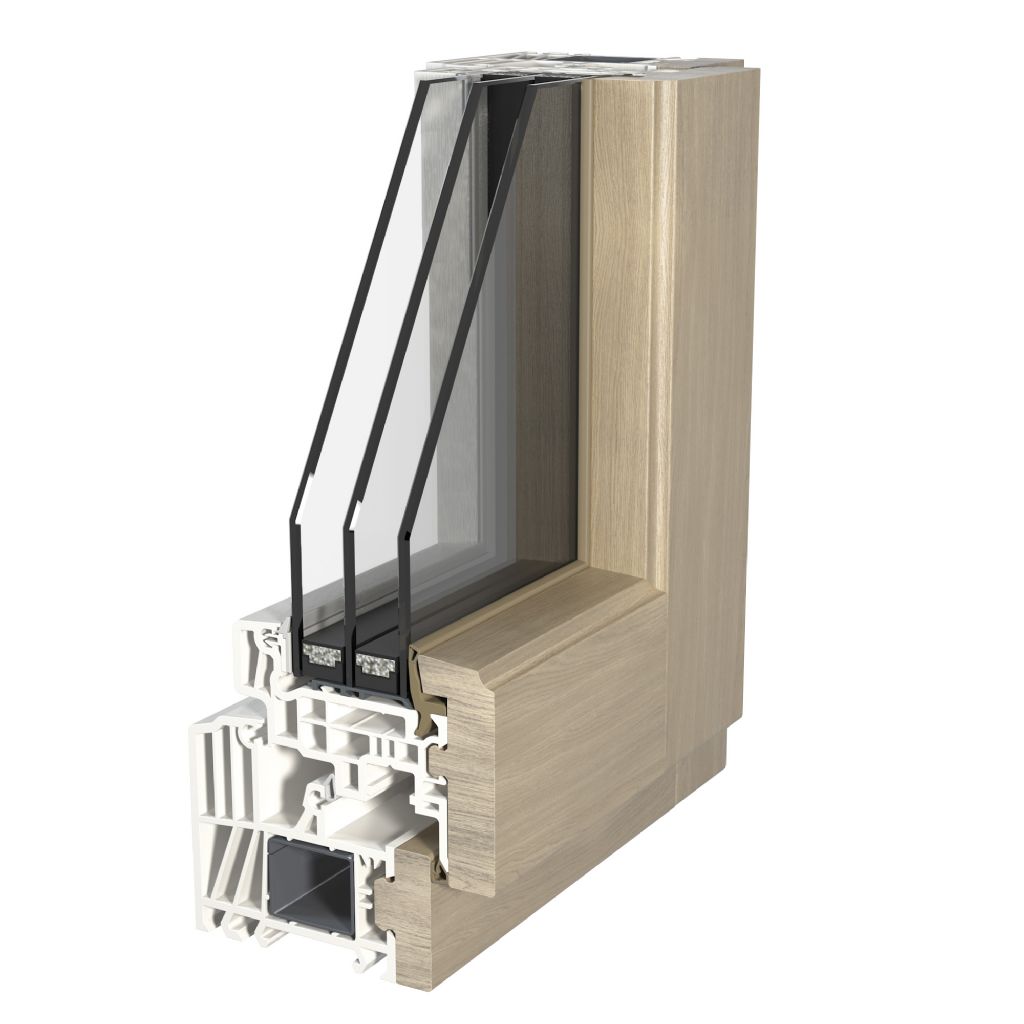 Finstral élargit son offre produits et propose encore une fois à ses clients la possibilité de personnaliser leur fenêtres selon leurs propres souhaits. « Nous utilisons le bois là où cela a le plus des sens, c’est-à-dire sur le côté intérieur de la fenêtre. De cette manière nous combinons le meilleur des différents matériaux : la chaleur du bois pour l’intérieur de l’habitation, un noyau PVC extrêmement isolant au cœur de la menuiserie et la résistance de l’aluminium ou du PVC pour le côté extérieur.