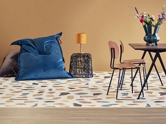 - Pierre & Céramique : Pour une apparence classique et intemporelle, les motifs terrazzo et carreaux sont toujours très populaires. Si la pierre naturelle n'est pas envisageable, ces impressions numériques ultraréalistes constituent une alternative parfaite, à la fois durable et visuellement attrayante.