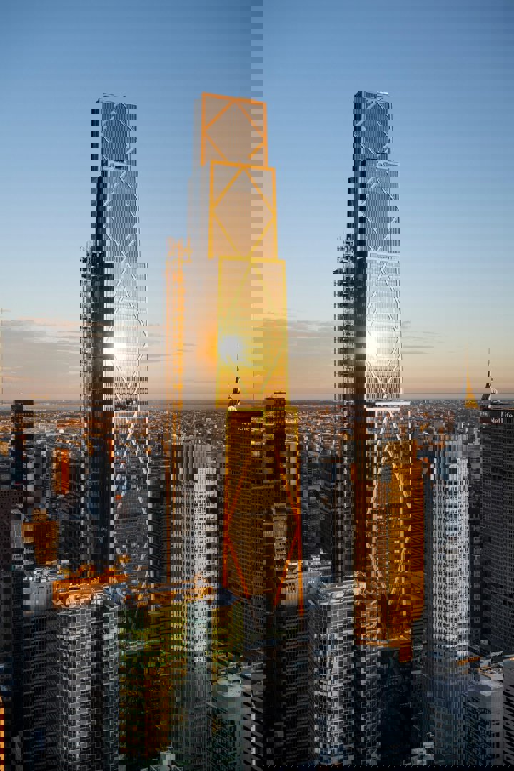 Foster + Partners met également en avant les performances environnementales du bâtiment : le gratte-ciel fonctionne entièrement à l’électricité, en accord avec la législation new-yorkaise sur la décarbonation. Selon le cabinet, cette stratégie avait été envisagée avant même l’entrée en vigueur de la loi. De plus, 97 % des matériaux de l’ancien bâtiment ont été réutilisés, soulignant une démarche d’économie circulaire rarement atteinte dans des projets de cette envergure.