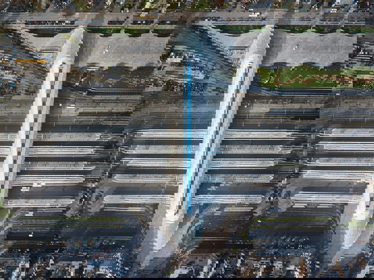 Au centre du projet, une galerie surélevée de 165 mètres traverse l’ensemble des voies, surplombant des quais de 350 mètres et un réseau d’arrêts de bus et de taxis. Cette galerie constitue l’épine dorsale de la nouvelle gare. Son volume dynamique, coiffé d’une toiture inclinée, se prolonge par de vastes auvents en verre qui abritent escaliers et escalators menant vers les quais.