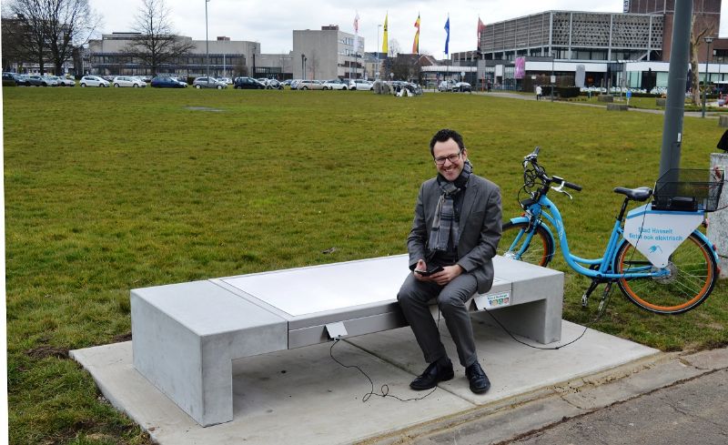 La ville de Hasselt vient de mettre un banc Solar de Stradus en service comme la première ville en Belgique. Le banc est équipé de panneaux photovoltaïques intégrés et permet de charger des téléphones mobiles, des tablettes, des ordinateurs portables, voire des vélos électriques. Joost Venken, échevin de l’Énergie et du Développement durable, est convaincu que le succès de ce type de mobilier urbain ira croissant. Peut-être que d’autres bancs solaires seront rapidement installés à Hasselt.