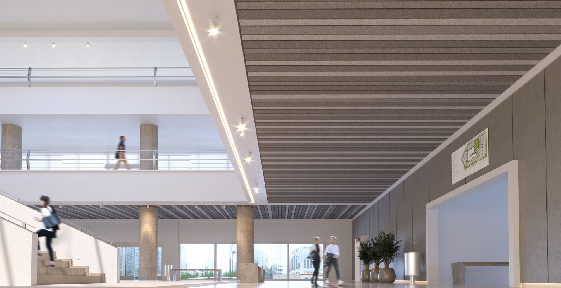 Pour lui, l’offre HeartFelt® Multipanel répond parfaitement à ces exigences grâce au feutre en fibres de polyester non tissées et thermoformées : « L’avantage d’un plafond en feutre est qu’il a un aspect chaleureux, presque doux. La lumière se reflète dans la pièce d’une manière agréable, différente de lorsque d’autres matériaux sont employés ; elle est un peu diffuse. Cela donne un aspect complètement différent de celui que l’on obtient avec un plafond métallique, par exemple. »