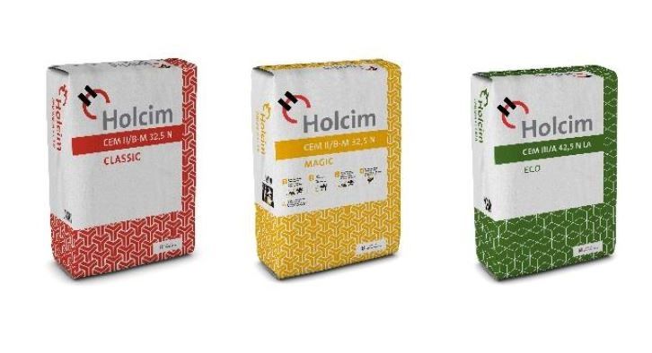 - L’Eco : Auparavant uniquement disponible en vrac, le ciment Eco d’Holcim se présente désormais également dans un sac vert foncé et blanc. Ce nouveau ciment en sacs porte cette dénomination « Eco » car il a une empreinte CO2 beaucoup plus faible que les autres ciments, jusqu’à 50 % inférieure à celle engendrée pour la fabrication du ciment Portland. L’entreprise souhaite davantage contribuer à réduire son empreinte de CO2 dans les années à venir, et le ciment Eco est une des initiatives qui va dans ce sens. Dorénavant ensaché, l’Eco donne la chance aux professionnels du secteur de pouvoir l’utiliser sur de plus petits chantiers. Grâce à sa composition et à ses qualités de résistance, le ciment Eco d'Holcim est idéal pour les réalisations en béton de qualité et en particulier pour le béton dont la durabilité et une meilleure résistance chimique sont nécessaires.
