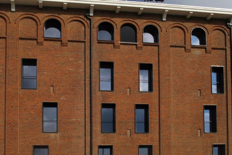 Le projet témoigne de la permanence et du changement ; la masse de la brique associée au béton et l’insertion des éléments contemporains de la rénovation en intégrant les principes du développement durable. Le percement des baies dans la façade aveugle de l’entrepôt a été réalisé de manière aléatoire afin de garder la dominance de la maçonnerie industrielle. Le traitement des baies par un cadre métallique permettant de masquer les profils de châssis donne une lecture de «pleins et vides» limpide.
