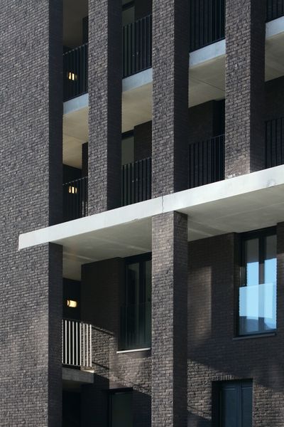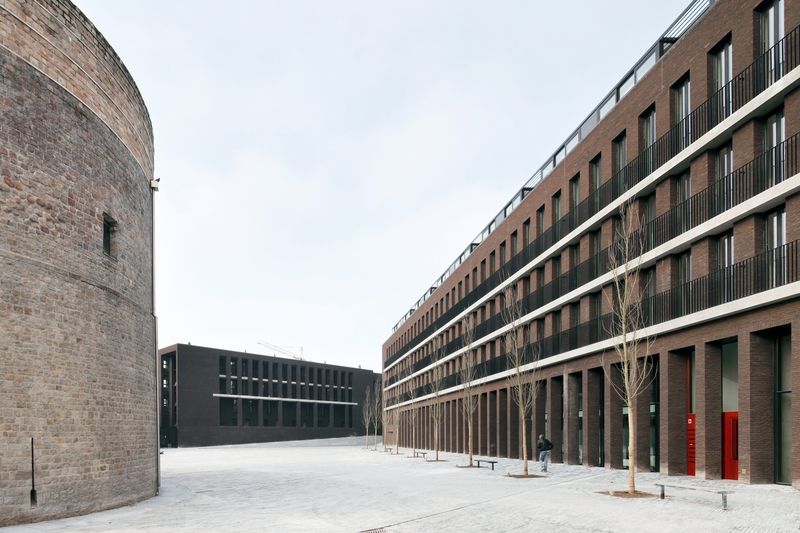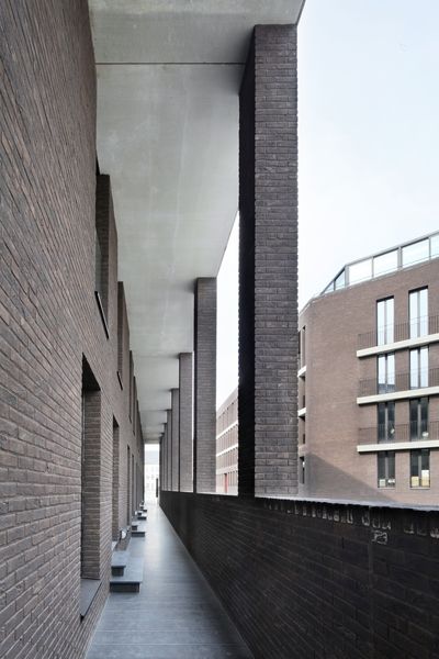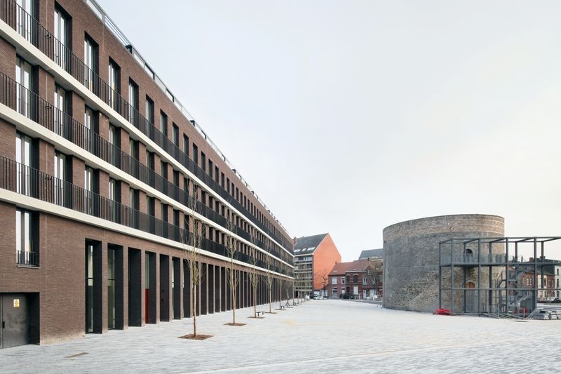 Le résultat est une architecture sérielle dont la force réside dans l’économie de moyens : L’effort est mis sur les qualités internes et la singularité des situations individuelles, tandis que le rythme de la composition extérieure fait simplement écho à celui des façades historiques de la ville intra-muros. Faisant référence à Peter Zumthor, le bureau souligne encore que « la qualité de l’édifice est créée par son « atmosphère », à travers sa capacité à « faire lieu ». Le promoteur, la société Himmos originaire d’Anvers qui y développe des projets qualitatifs dans un esprit de requalification urbaine, cherche en effet à réaliser « des environnements uniques à des endroits exceptionnels ». La proposition de faire poser une sculpture de Jan Fabre dans l’espace public a d’ailleurs été faite un temps, puis abandonnée.
