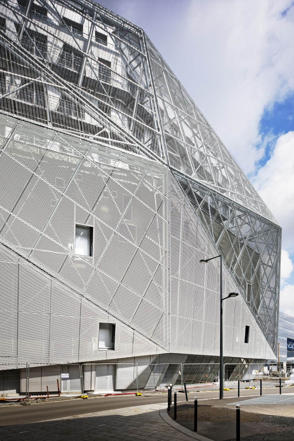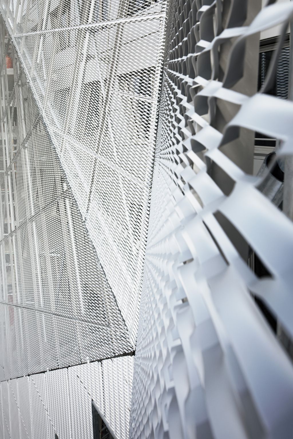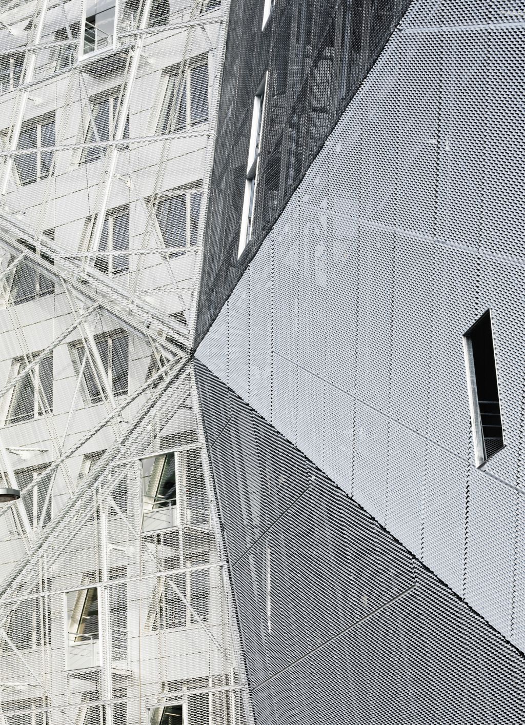 Une double peau en aluminium anodisé, un exosquelette en résille