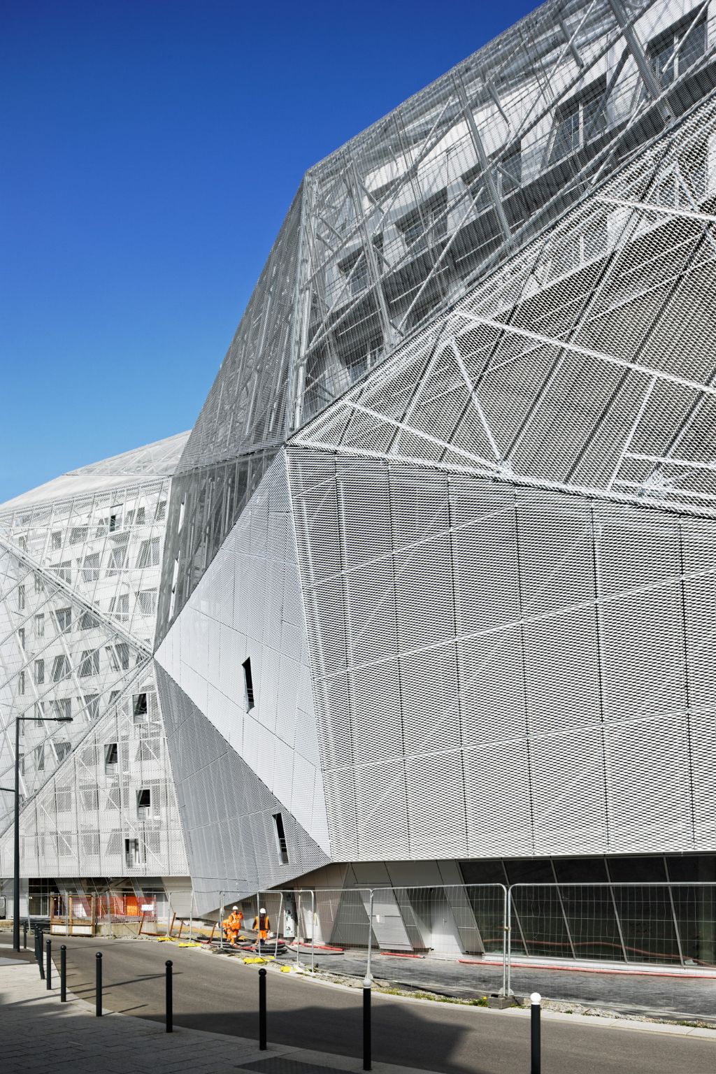 Identity se présente comme une géode dont l’éclatement aurait donné naissance à trois vaisseaux aux dessins angulaires et singuliers. Leur dénominateur commun : des façades en double peau en aluminium anodisé qui imprime à chaque bâtiment son identité propre.