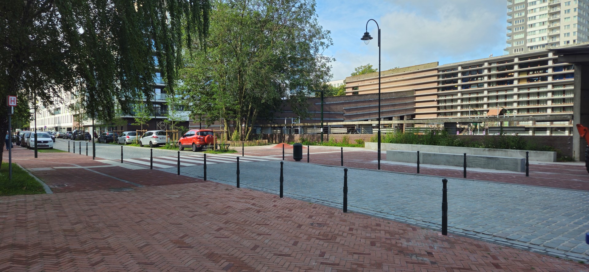 Un atelier de réparation de vélos a également été installé, et une partie de la route a été aménagée en parcours cyclable, permettant aux enfants du quartier d'apprendre à faire du vélo en toute sécurité. Au total, 33 arceaux ont été ajoutés pour encourager l’utilisation du vélo. La nouvelle rampe paysagère facilite l'accès à la cour intérieure des logements, renforçant ainsi la cohésion sociale dans le quartier.