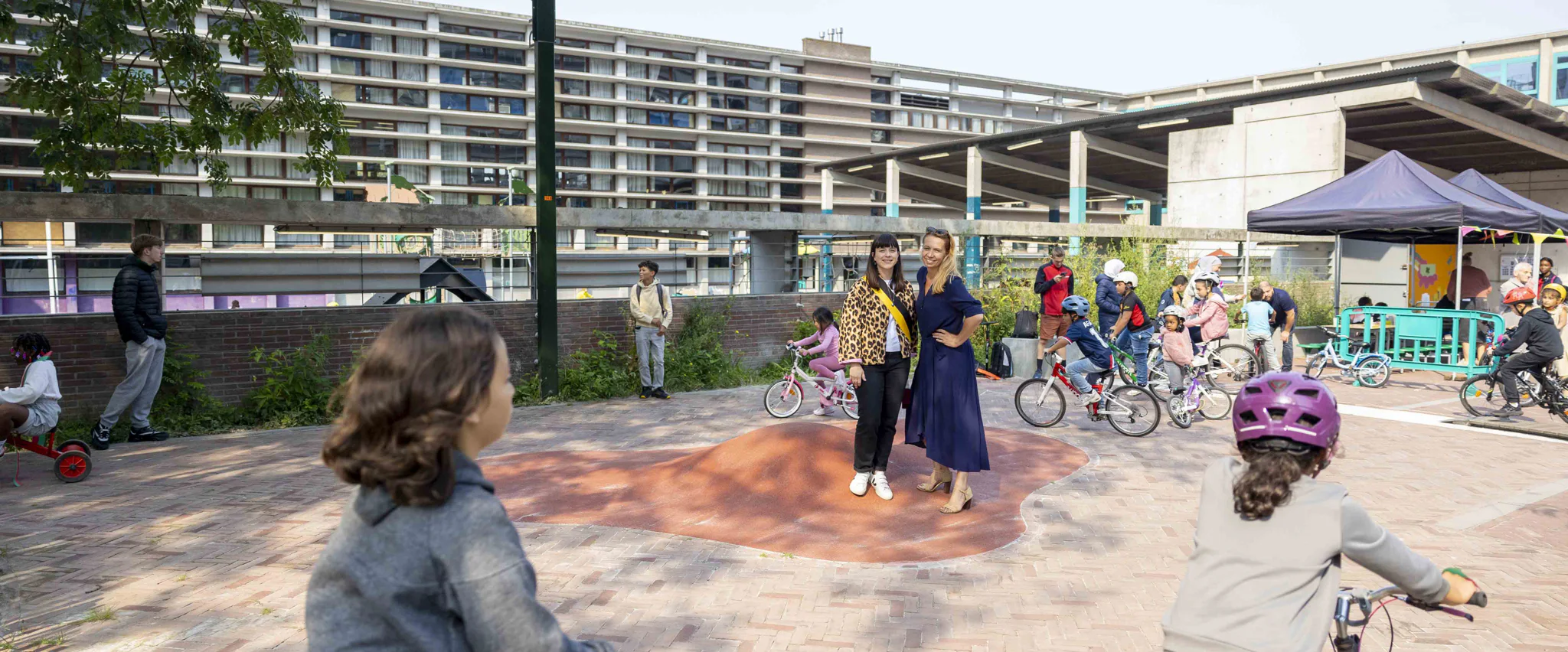 Aujourd'hui, nous avons célébré l’inauguration officielle du nouveau parvis de l'école primaire Klavertje Vier, situé sur l’avenue de l’Héliport. En présence des habitant·e·s du quartier, des élèves, des enseignant·e·s et de représentant·e·s politiques, cette réalisation a été mise à l'honneur.