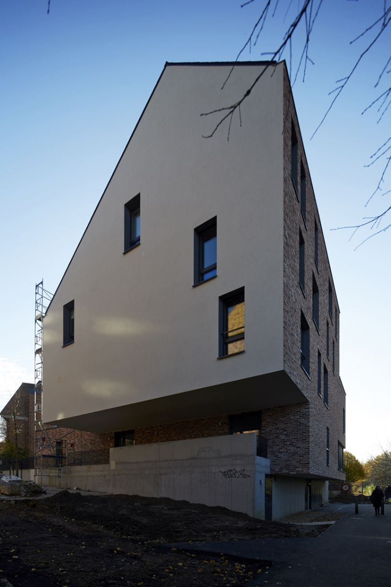 D'une superficie de 1347m2 brut / 992m2 net (dont 295m2 de parking) permettant de loger 14 à 16 personnes, l'immeuble passif comprend :