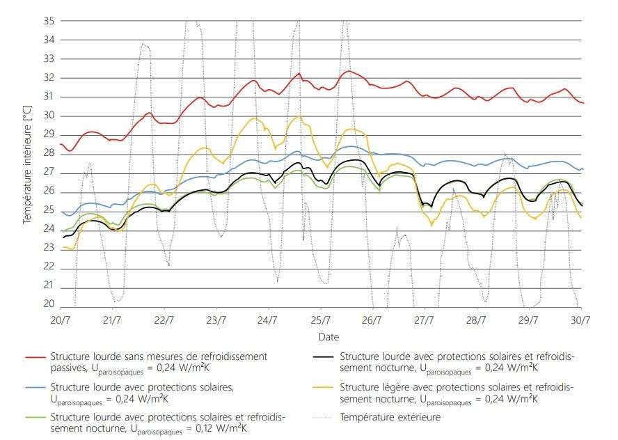 Ces simulations partent du principe que les protections solaires sont utilisées de manière cohérente et que les fenêtres sont ouvertes au bon moment.