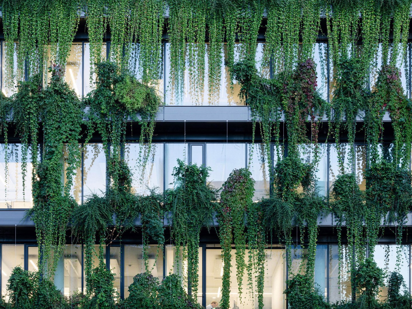 Selon Ingenhoven Associates, « la densité de la façade verte varie : elle est plus modérée devant les fenêtres des bureaux pour optimiser la lumière, et s’intensifie devant les cages d’escalier. »