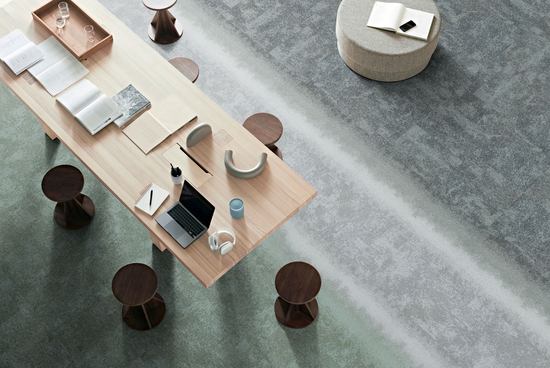Connected Ethos utilise du nylon 100% recyclé et est neutre en carbone grâce à au programme Carbon Neutral Floors d’Interface.
