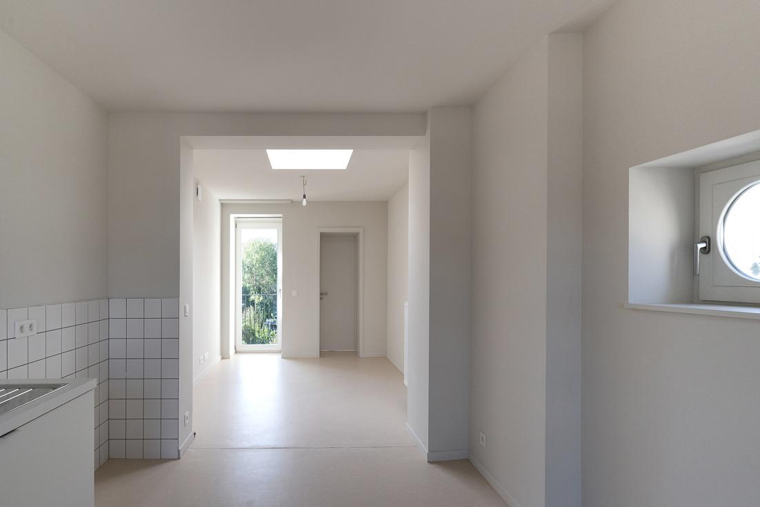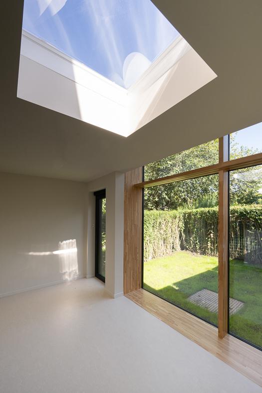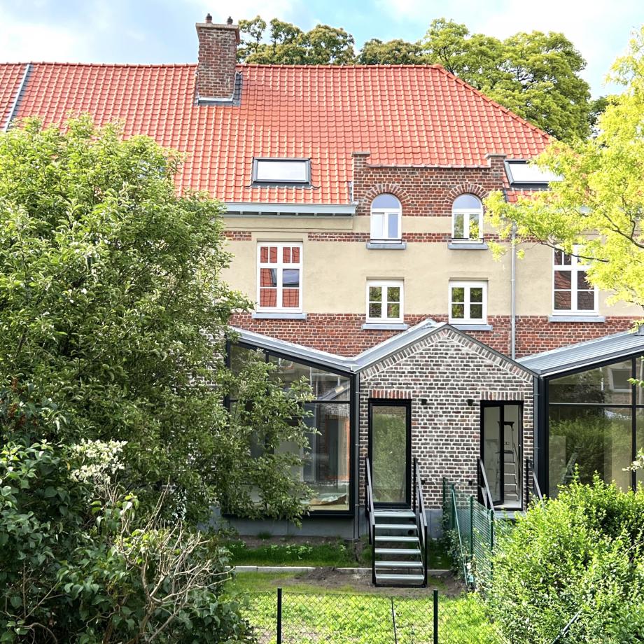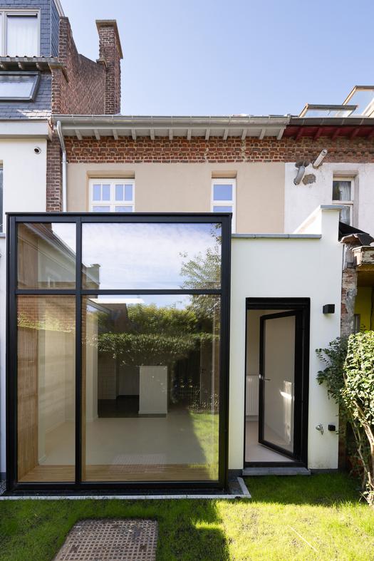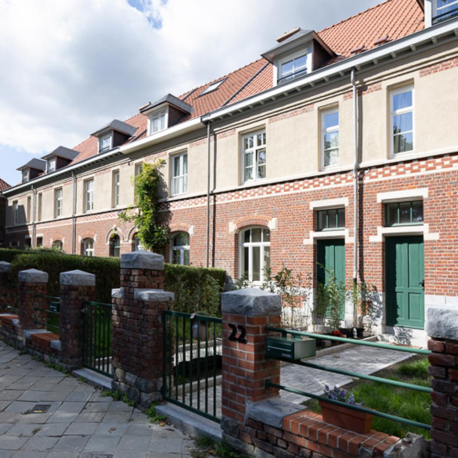 Les façades à rue ont été restaurées de manière à conserver leur caractère patrimonial d’origine, mais elles ont été isolées par l’intérieur. Les façades arrière ont été pourvues d’annexes contemporaines dans le respect du rythme de la cité. Elles ont de larges baies vitrées encadrées de bois. Celles-ci offrent beaucoup de lumière et le contact visuel avec la nature environnante. L’extension arrière respecte le rythme des façades et l’aspect urbanistique de la cité-jardin. Les maisons sont pourvues d’un jardinet arrière.
