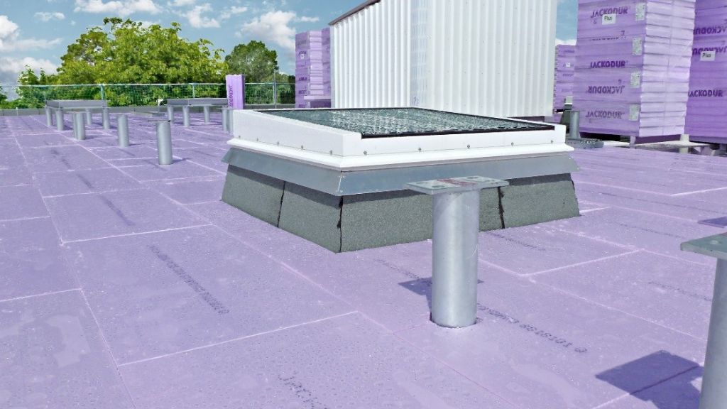 Isolation des toitures-terrasses : Jackodur® Plus se pose sans aucun collage, ni chevillage, directement sur l’étanchéité pour une réalisation toiture-terrasse inversée. Il est ensuite lesté avec du gravier ou peut servir de support à une végétalisation. Dans ce type d’application, c’est l´isolation qui protège l´étanchéité, notamment du rayonnement ultraviolet, et empêche tout« flottement » de celle-ci en cas de forte pluie.