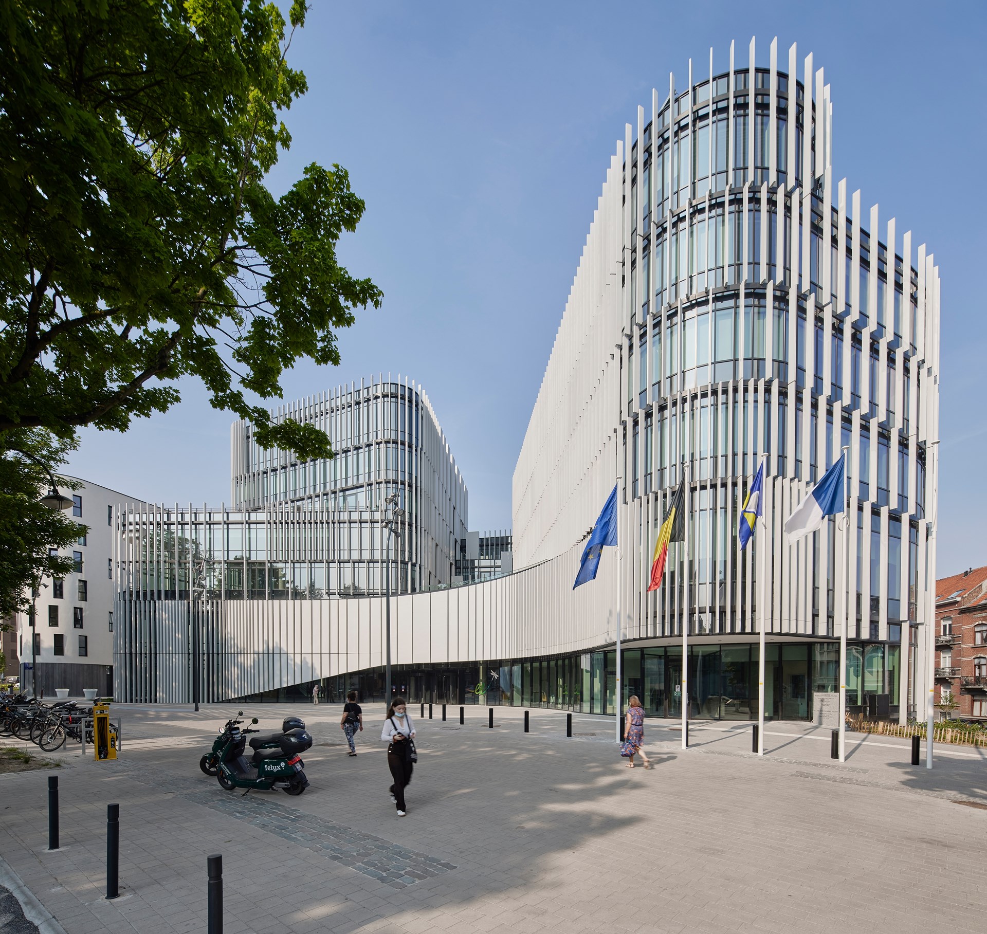 Il suffit de regarder, par exemple, le complexe administratif d'Etterbeek (une collaboration avec BAEB), un bâtiment passif dont la consommation d'énergie fossile a été réduite au minimum. « Avec l'équipe d'ingénierie et de construction, nous avons cherché la meilleure approche possible pour minimiser l'impact solaire. Une étude solaire approfondie nous a permis de définir une carte thermique du bâtiment, mais aussi d'établir un positionnement et un aménagement intelligents. Grâce à la combinaison d'une excellente isolation et d'une bonne étanchéité à l'air, le résultat a été excellent – même si c'est nous qui le disons. La façade vitrée intelligente, avec des lamelles en béton haute performance fixées par un système ingénieux, est le point d'orgue de ce projet. Un maximum de lumière naturelle et un minimum d'impact solaire constituent ici une combinaison gagnante », déclare-t-on chez Jaspers-Eyers Architects.