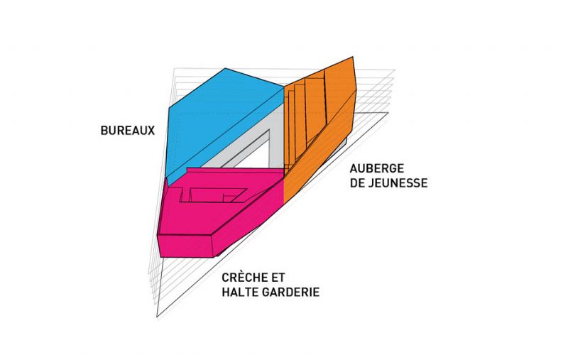 Le quartier de la Porte de Valenciennes à Lille (France) voit actuellement sortir de terre un triple équipement public combinant une auberge de jeunesse, un centre d'accueil de la petite enfance et le Centre des Innovations socio-économiques. C'est JDS Architects qui est à l'oeuvre, après avoir remporté en 2011 un concours fort couru. Le bâtiment devrait être inauguré en 2015.